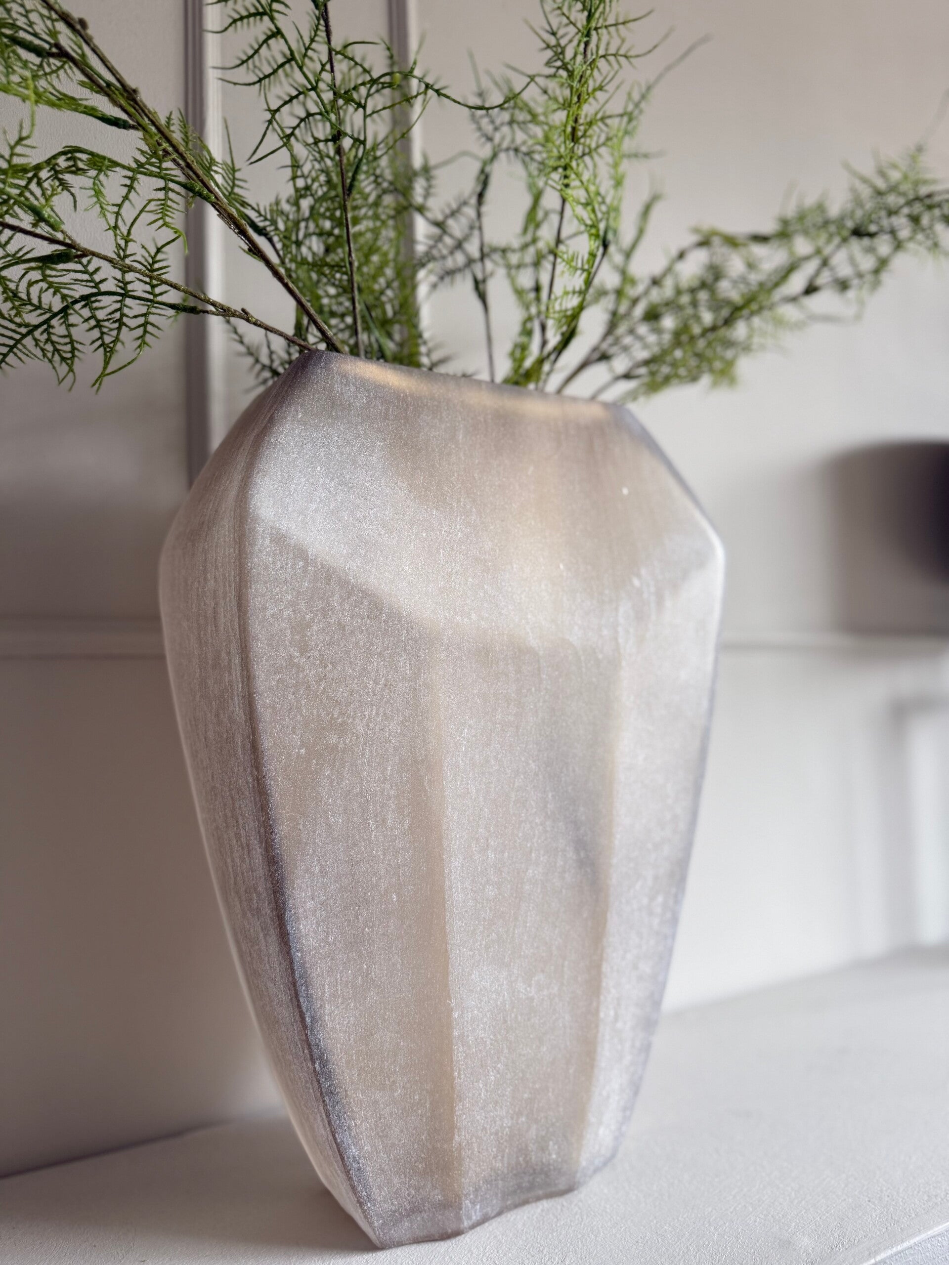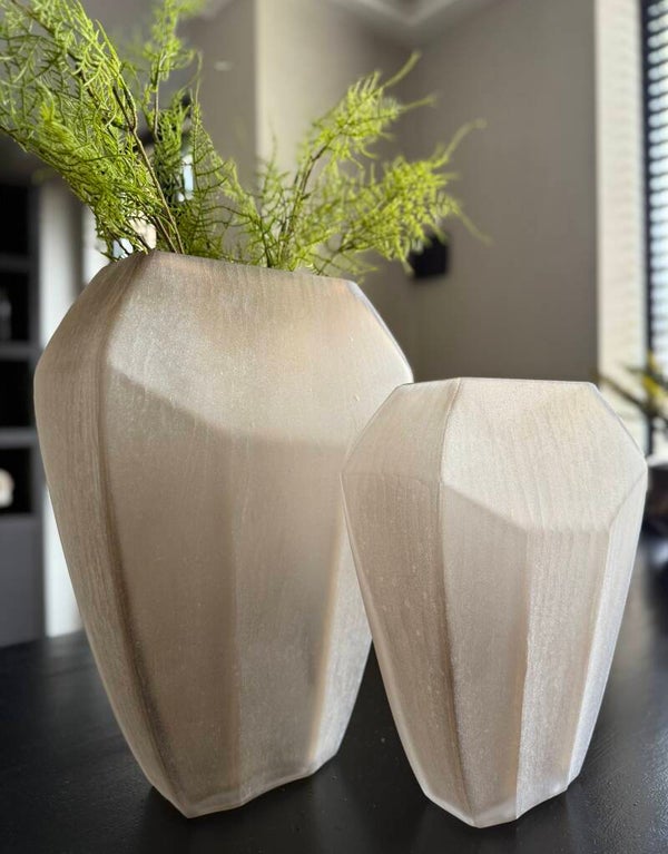 Wij hebben weer een topper binnen gekregen! Prachtige smalle vazen van glas in een mooie beige kleur met een frosted look.