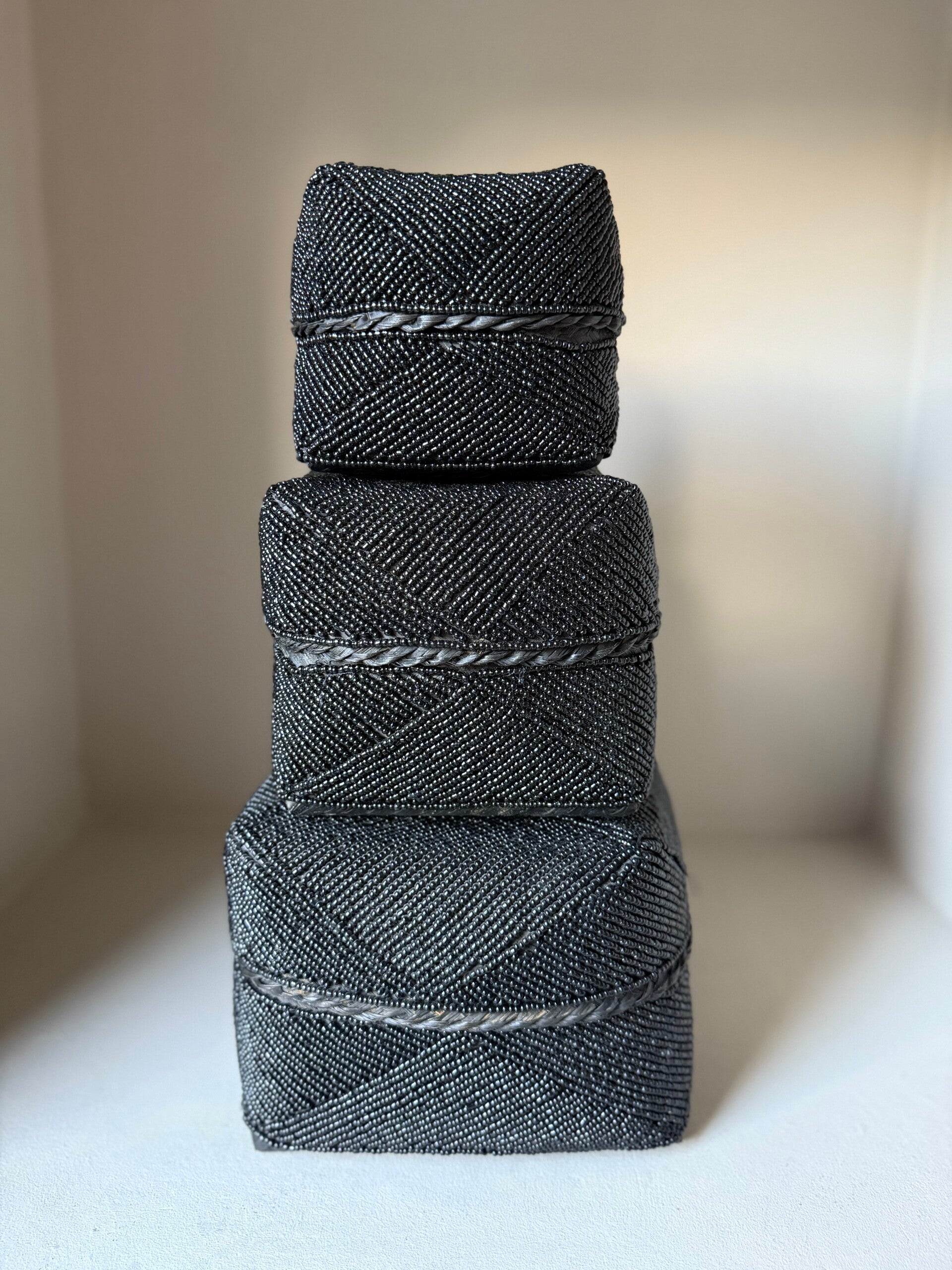 Deze prachtige manden uit Bali zijn handgemaakt van bamboe en bewerkt met honderden kleine kralen. Het zijn stevige doosjes waar je allerlei spullen in kunt opbergen. Dit soort offermanden worden in Bali gebruikt voor ceremonies.