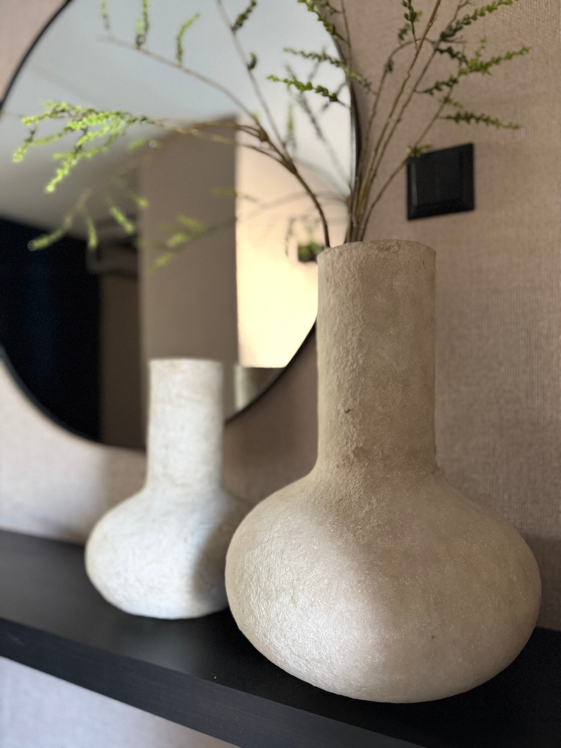 Zijn ze niet geweldig? Prachtige grote Cotton Maché vazen in een bruine kleur.