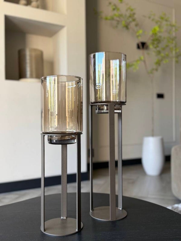 Prachtig windlicht op een metalen bronzen voet van Haans Lifestyle. Maat XS: Diameter 13,5cm x Hoogte 48 cm